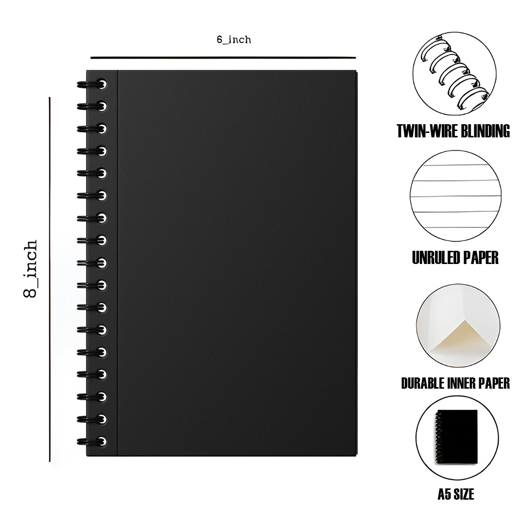 The Notebook is a compact A5 size diary with pages. Perfect for daily use, this Notebook offers ample space for writing, planning, and organizing your day. Its convenient size makes it easy to carry and the 120 pages provide enough room for all your thoughts and ideas. Keep your life organized